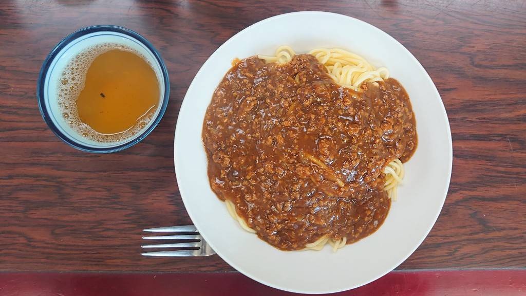 今日の梅金食堂のお昼ご飯は、ミートスパゲッティでした。
